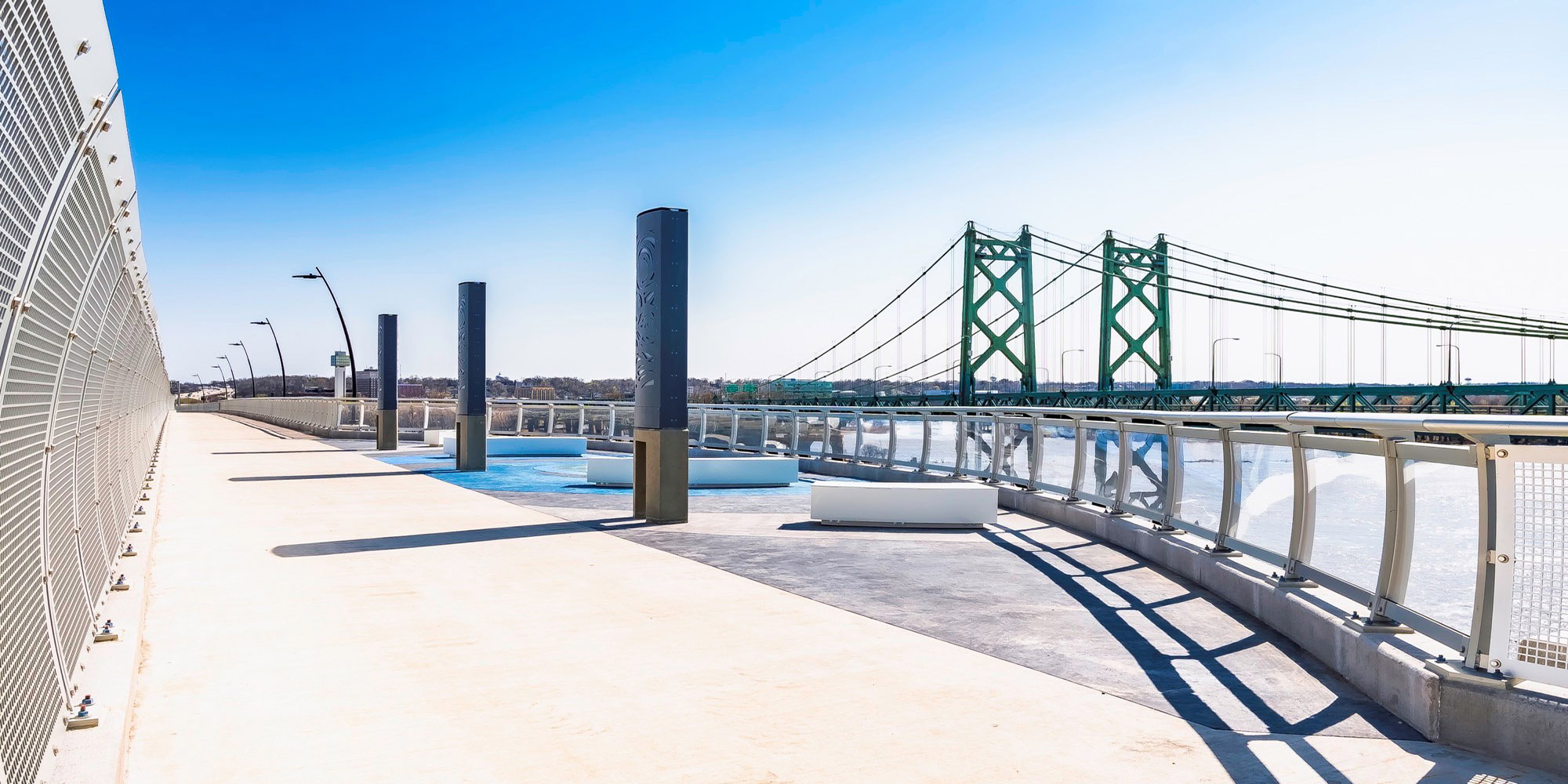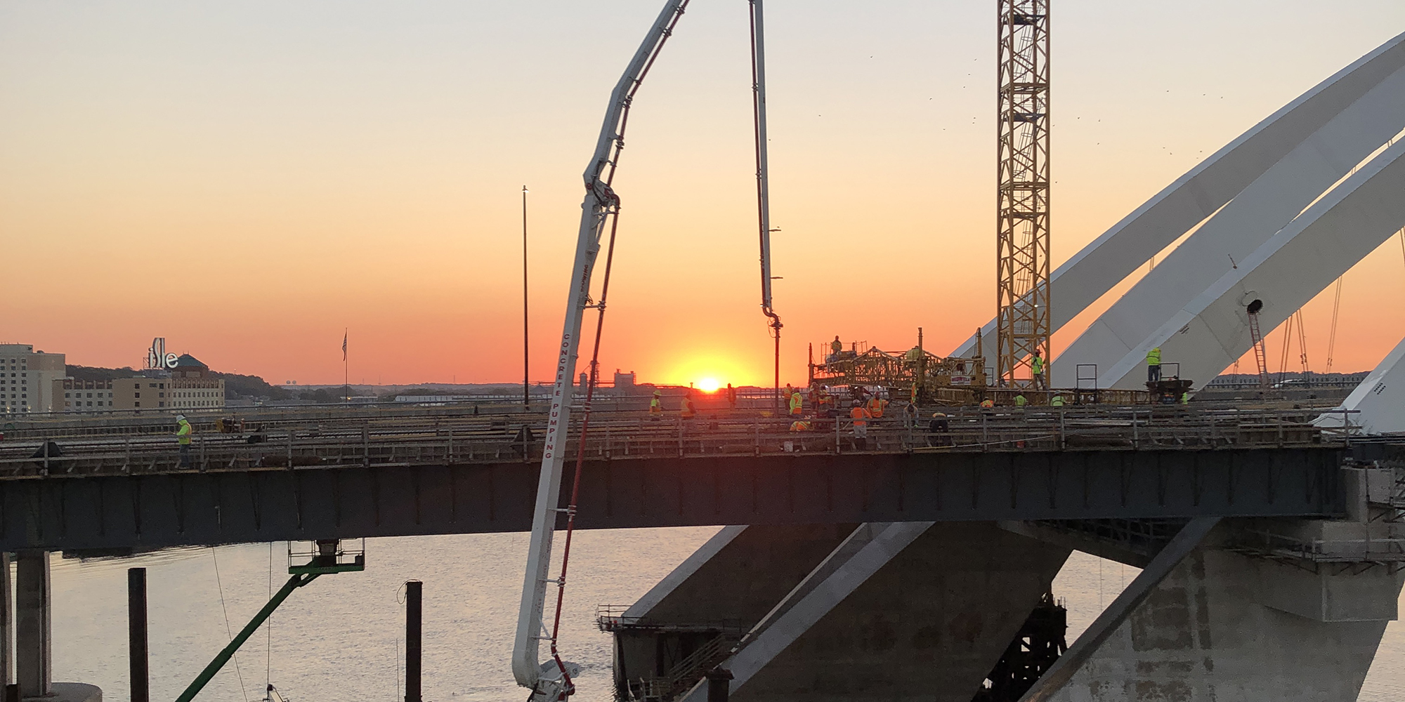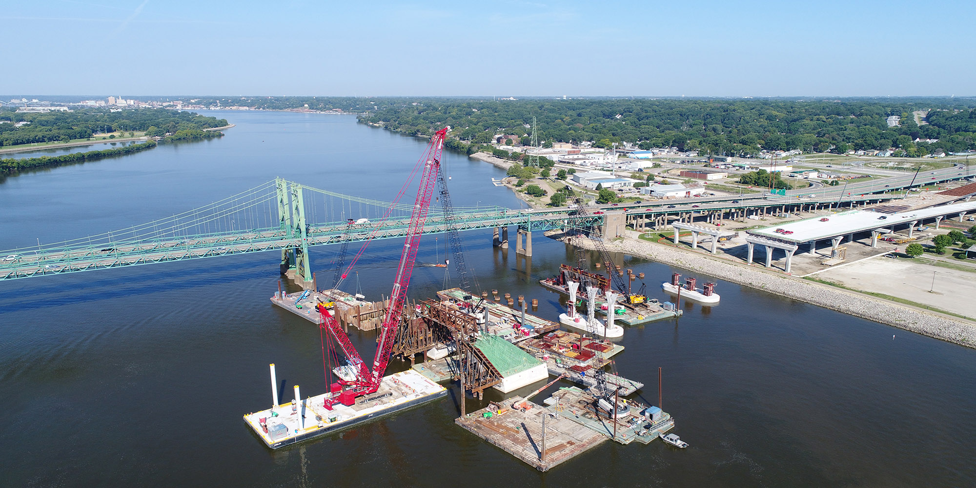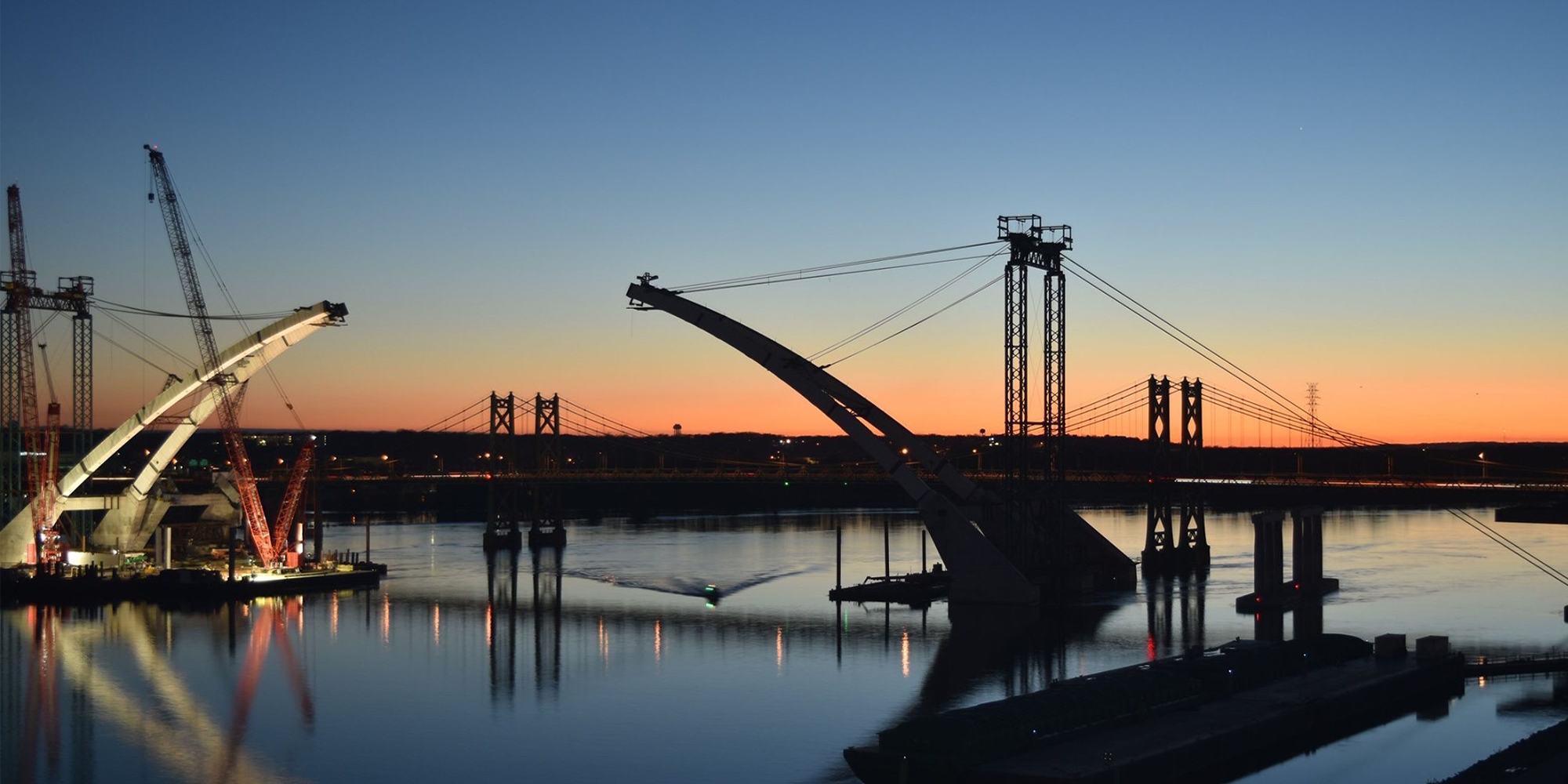 Part of a regional strategy for improving access across the Mississippi River in the Quad Cities, the I-74 Mississippi River Bridge project includes the replacement of the old I-74 over the Mississippi River. Lunda constructed two basket-handle true arches using a tower and stay system that is typically reserved for parallel arches to avoid obstructions to the busy navigational channel of the Mississippi River. The 800-foot basket handle arches are the longest basket handle true arches erected in the United States and one of very few erected in place. The bridge is more than twice as wide as the old bridge and includes a multi-use path on the bridge that will connect to paths in Bettendorf and Moline. The project also features roadway and aesthetic lighting on and underneath the bridge structures, and a scenic overlook with connections to added pedestrian and bike paths. The bridge is expected to carry 100,000 vehicles per day by the year 2035.