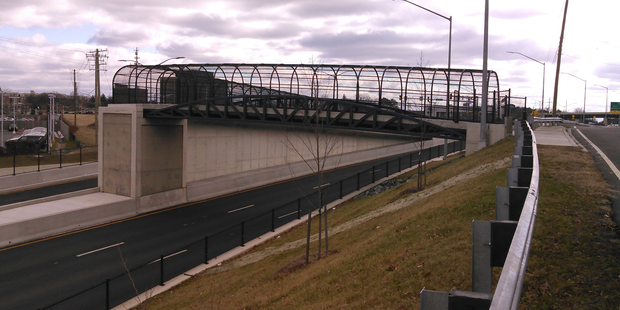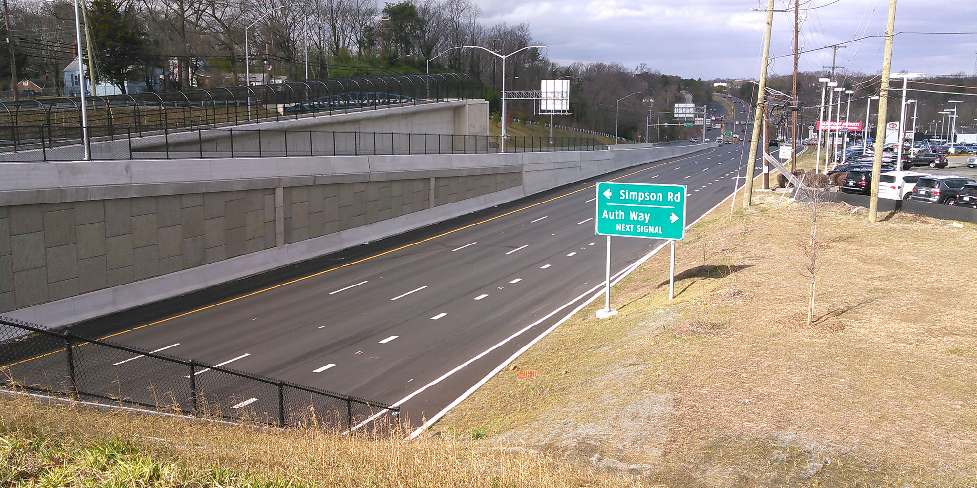 This project consisted of the reconstruction of MD 5 (Branch Avenue) for 0.5 miles and improvements to 1.0 mile of Prince George’s County roadways connecting MD 5, Access Road, and the Metro Station. Included were construction of a four-lane roadway (Woods Way) with sidewalks; the reconstruction, lowering, widening, resurfacing, and turn lanes of MD 5; two steel bridges; five retaining walls; widening, resurfacing, turn lanes, sidewalks and bus pads along Auth Road; stormwater management ponds; drainage systems; traffic signals; lighting; signage and structures; pavement markings; utility relocations; and grading and landscaping.
