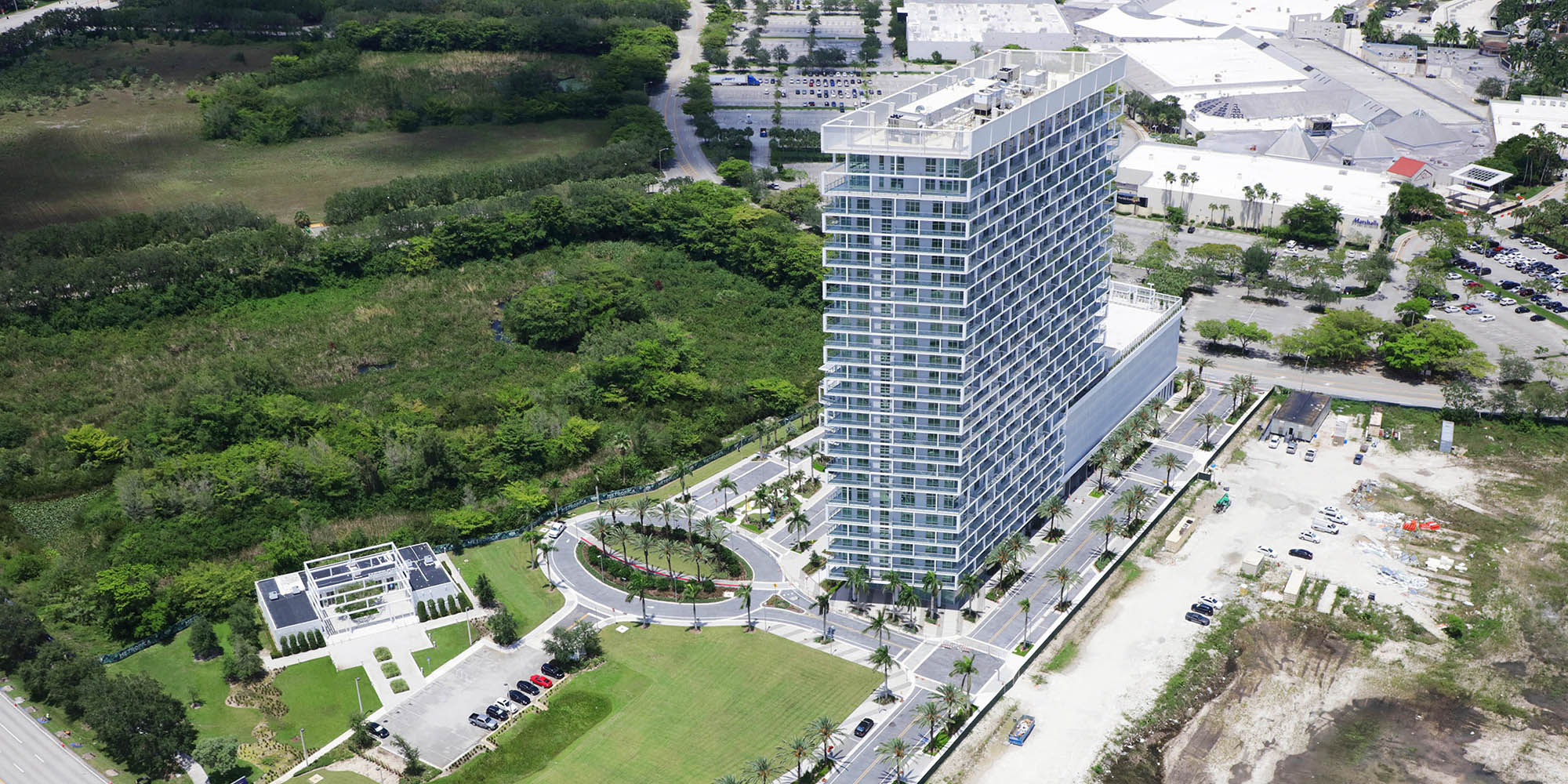 A 28-story residential tower that comprises 700,000 square feet and features 263 tropically-inspired units and ten penthouses, a resort-style pool, an indoor game room, a 24-hour fitness center, massage therapy rooms, tennis courts, a movie theater and a parking garage.