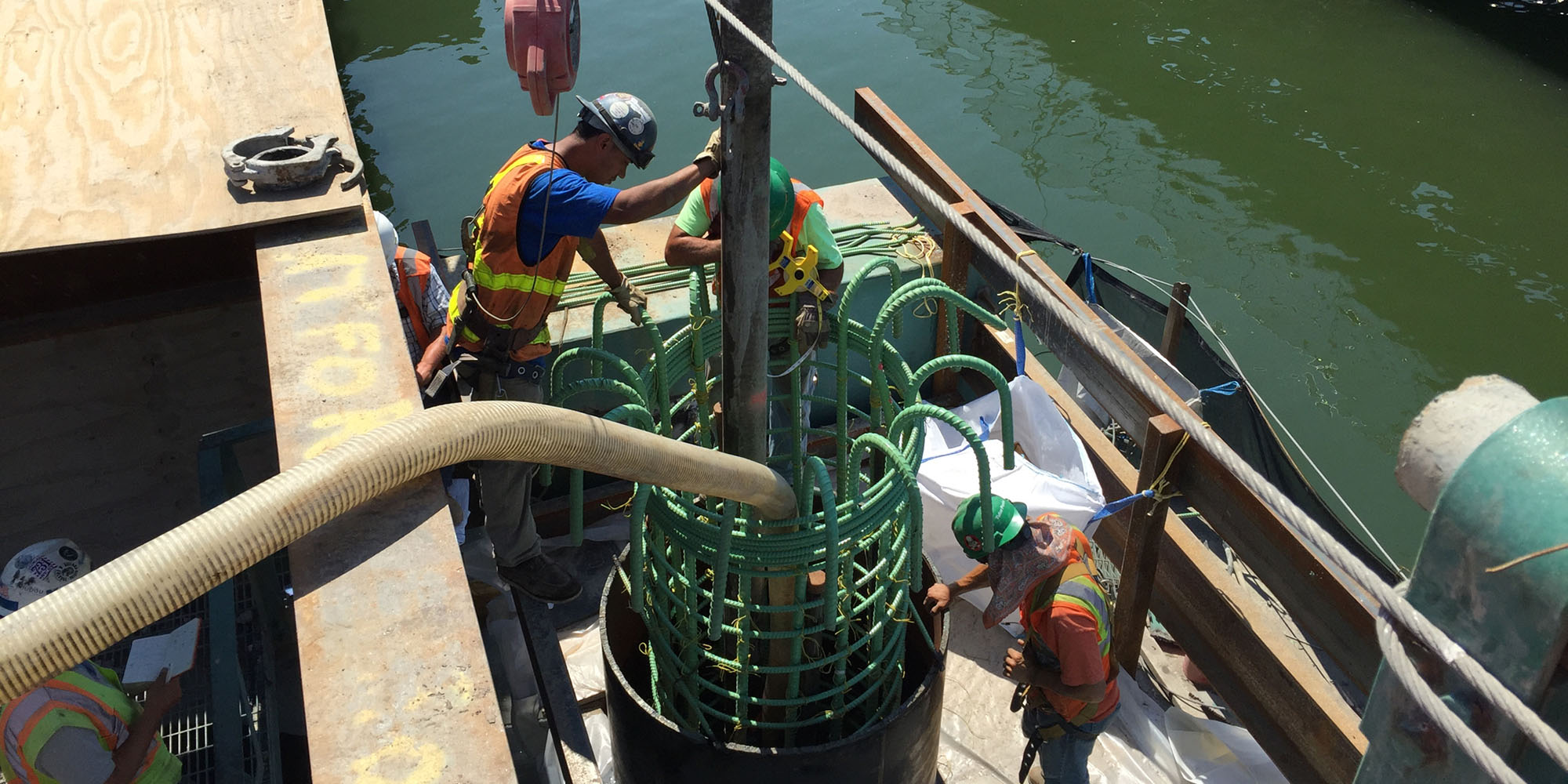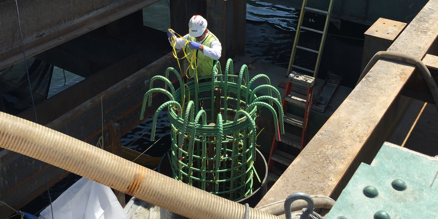 The project included eight caissons; 4-inch diameter, 5-foot-deep, permanent casing; 42-inch diameter rock socket; one Osterber load test, installed over water for pier foundations. It also utilized 52 micropiles; 13-inch diameter, 40-feet deep, permanent casing; and 12-inch rock socket, tested to 600 KIPS.