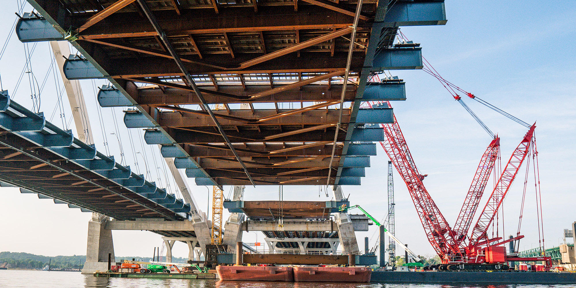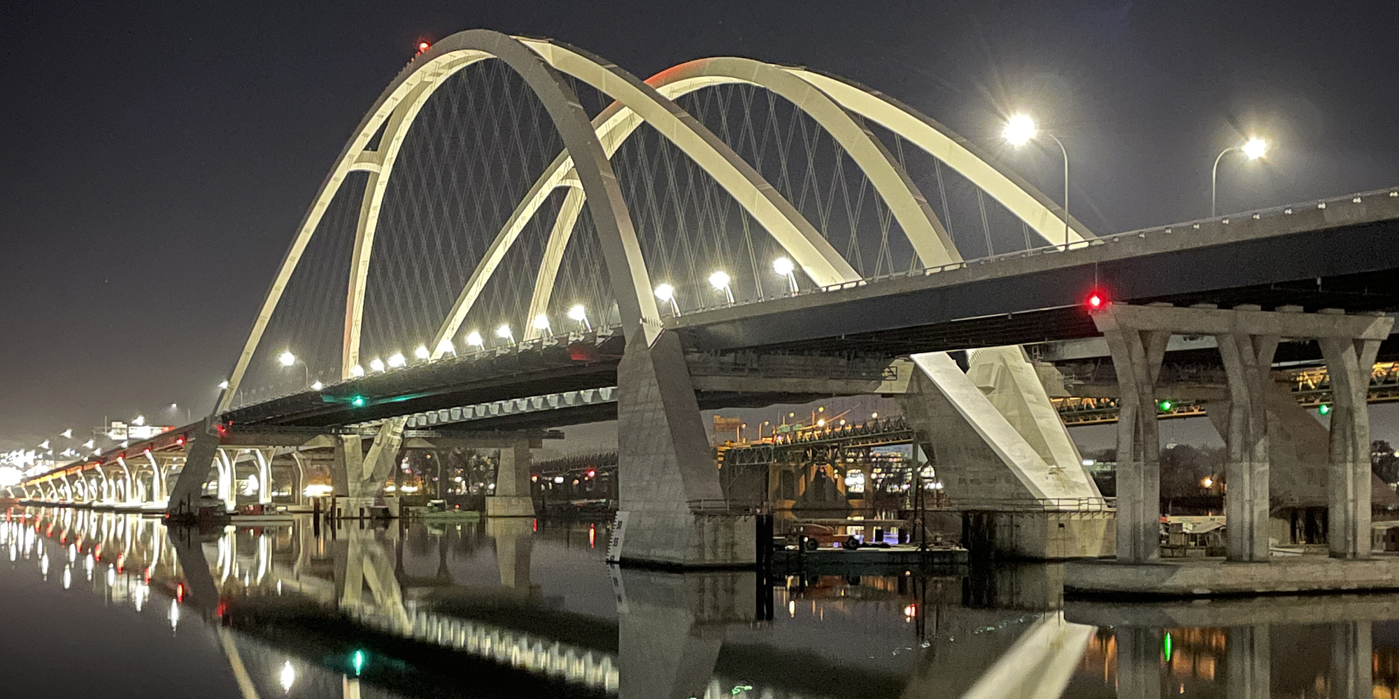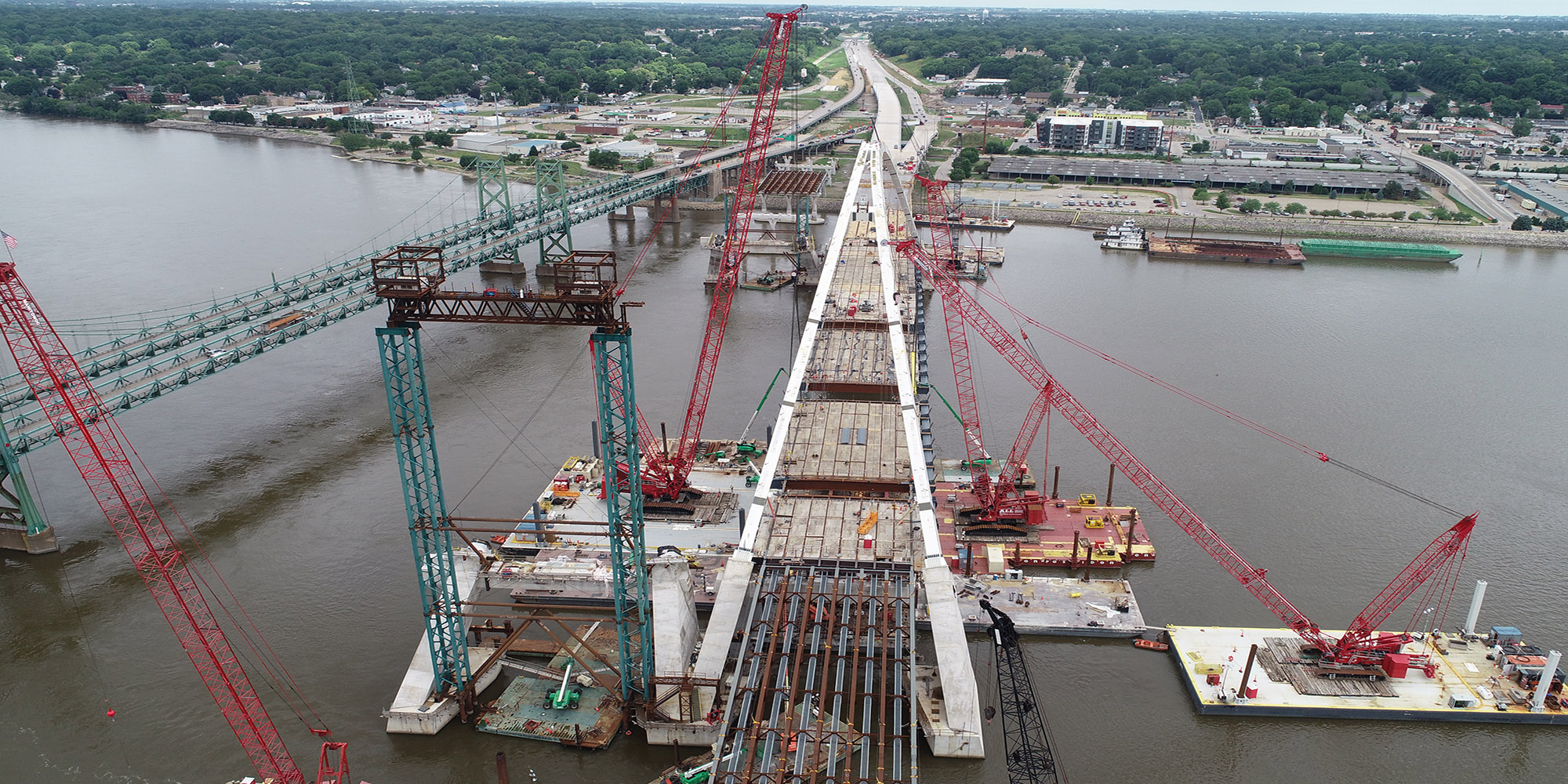 Part of a regional strategy for improving access across the Mississippi River in the Quad Cities, the I-74 Mississippi River Bridge project includes the replacement of the old I-74 over the Mississippi River. Lunda constructed two basket-handle true arches using a tower and stay system that is typically reserved for parallel arches to avoid obstructions to the busy navigational channel of the Mississippi River. The 800-foot basket handle arches are the longest basket handle true arches erected in the United States and one of very few erected in place. The bridge is more than twice as wide as the old bridge and includes a multi-use path on the bridge that will connect to paths in Bettendorf and Moline. The project also features roadway and aesthetic lighting on and underneath the bridge structures, and a scenic overlook with connections to added pedestrian and bike paths. The bridge is expected to carry 100,000 vehicles per day by the year 2035.