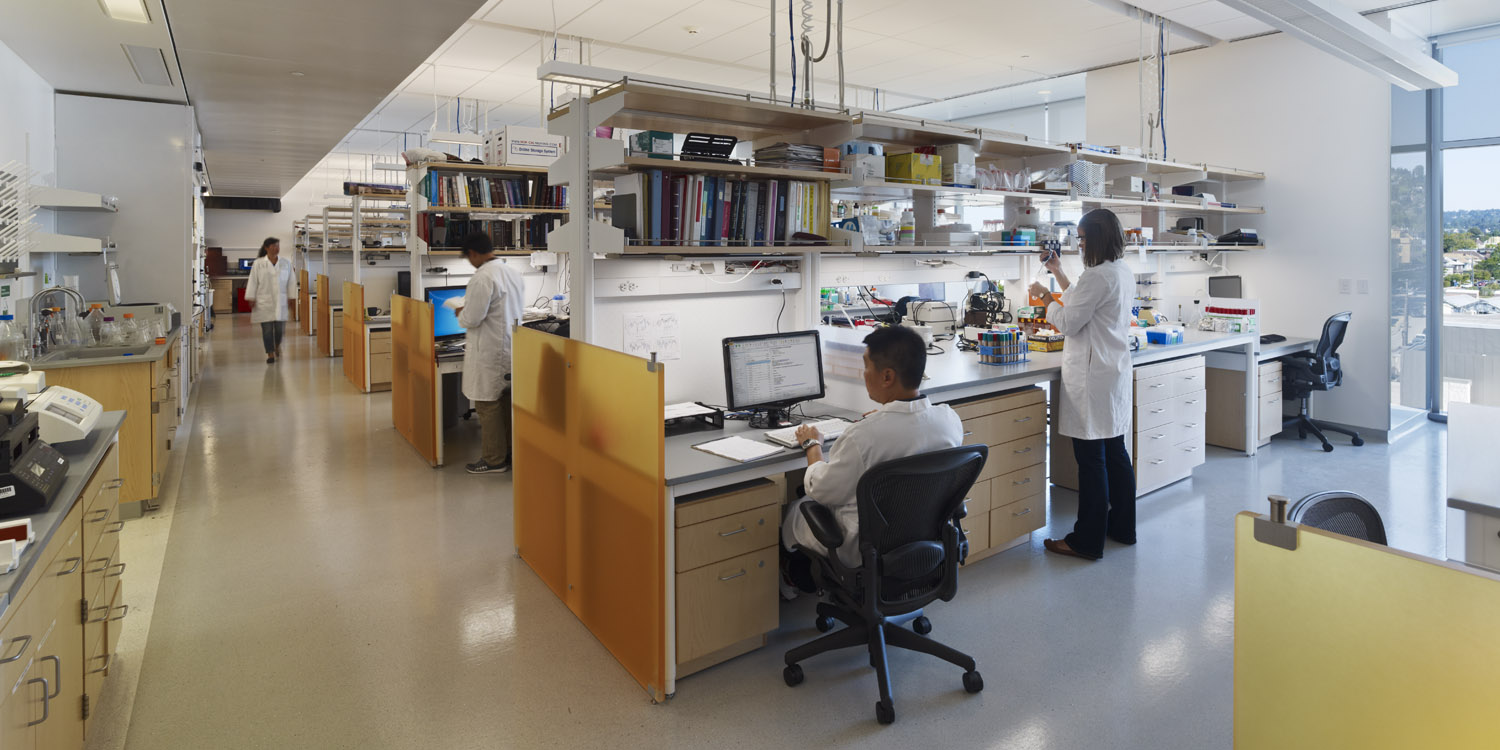 This six-story laboratory and office building includes wet research laboratory space and lab, as well as office and administrative support spaces. The project included demolition and abatement of a 350,000-square-foot health services building. The project was registered for LEED Silver NC but achieved LEED Gold NC.