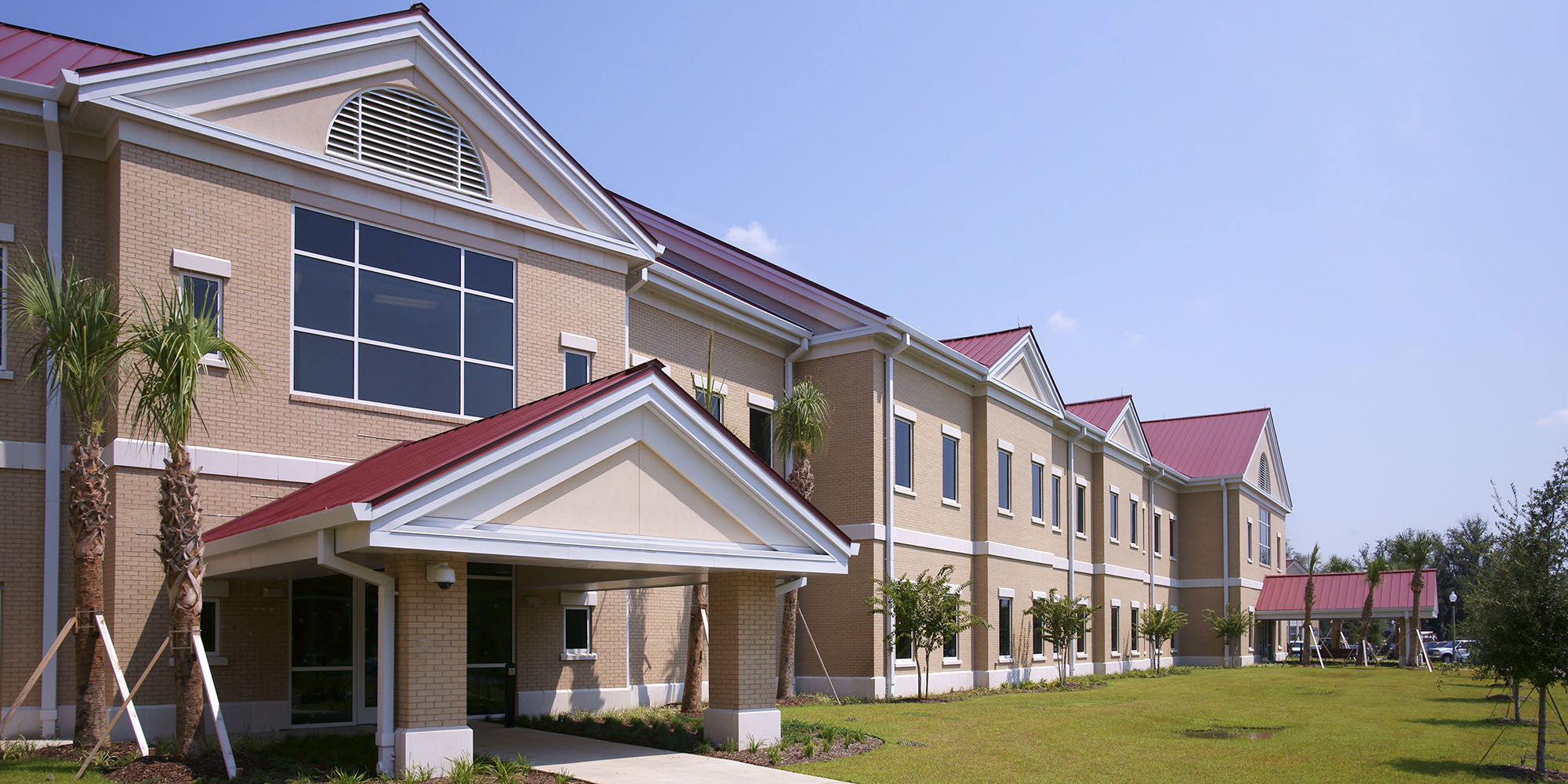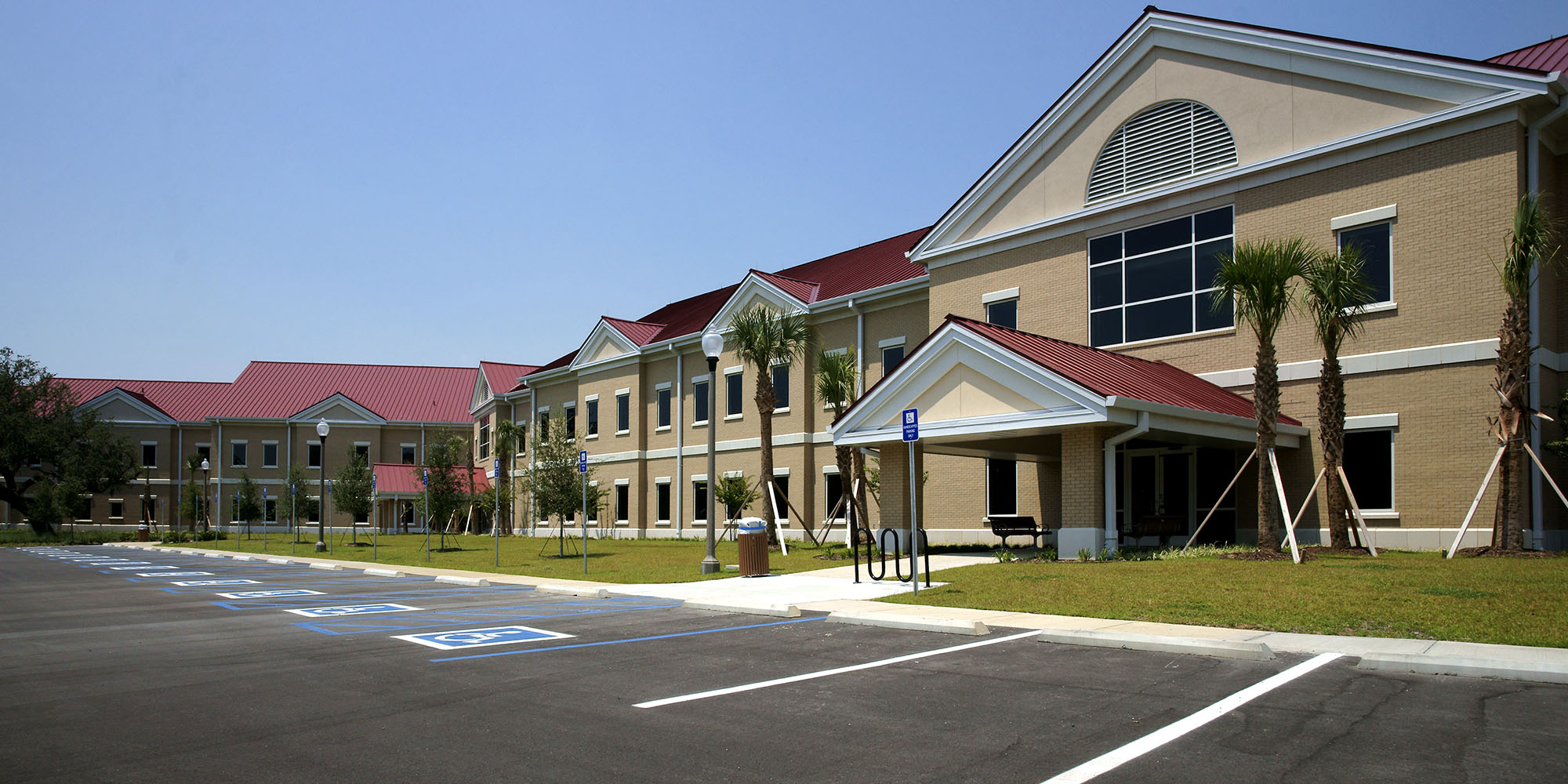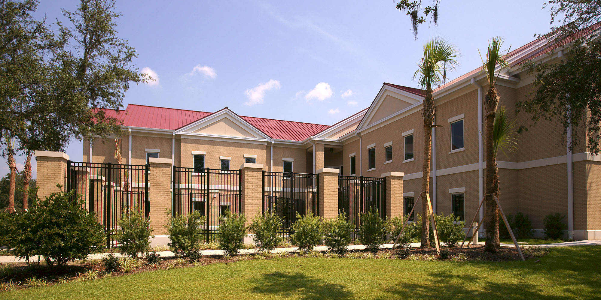 The facility was designed to house both institutional and clinical mental health patients. Because of the proximity to the Gulf of Mexico, the building is designed to the most stringent hurricane impact requirements as well as for progressive collapse and blast impact requirements. This project was designed and constructed in compliance with EPAct 2005 and consists of a two-story, 64-bed in-patient and out-patient care facility along with a mechanical penthouse. The structural steel and concrete frame is supported by auger cast piling and capped with a standing seam metal roof. Because this project is located in the middle of an existing active hospital campus, extensive coordination was required for all work involving the relocation of existing infrastructure as well as the installation of site utilities, roadways, and parking. The site utility portion of this project provided sanitary sewer service to the existing campus as well as the newly developed buildings and included the replacement of the existing sanitary sewer system with updated piping structures and a lift station. Installation of roadways and relocating utilities presented a challenge during construction since there could not be any interruption of the existing services to the facility during the construction period.