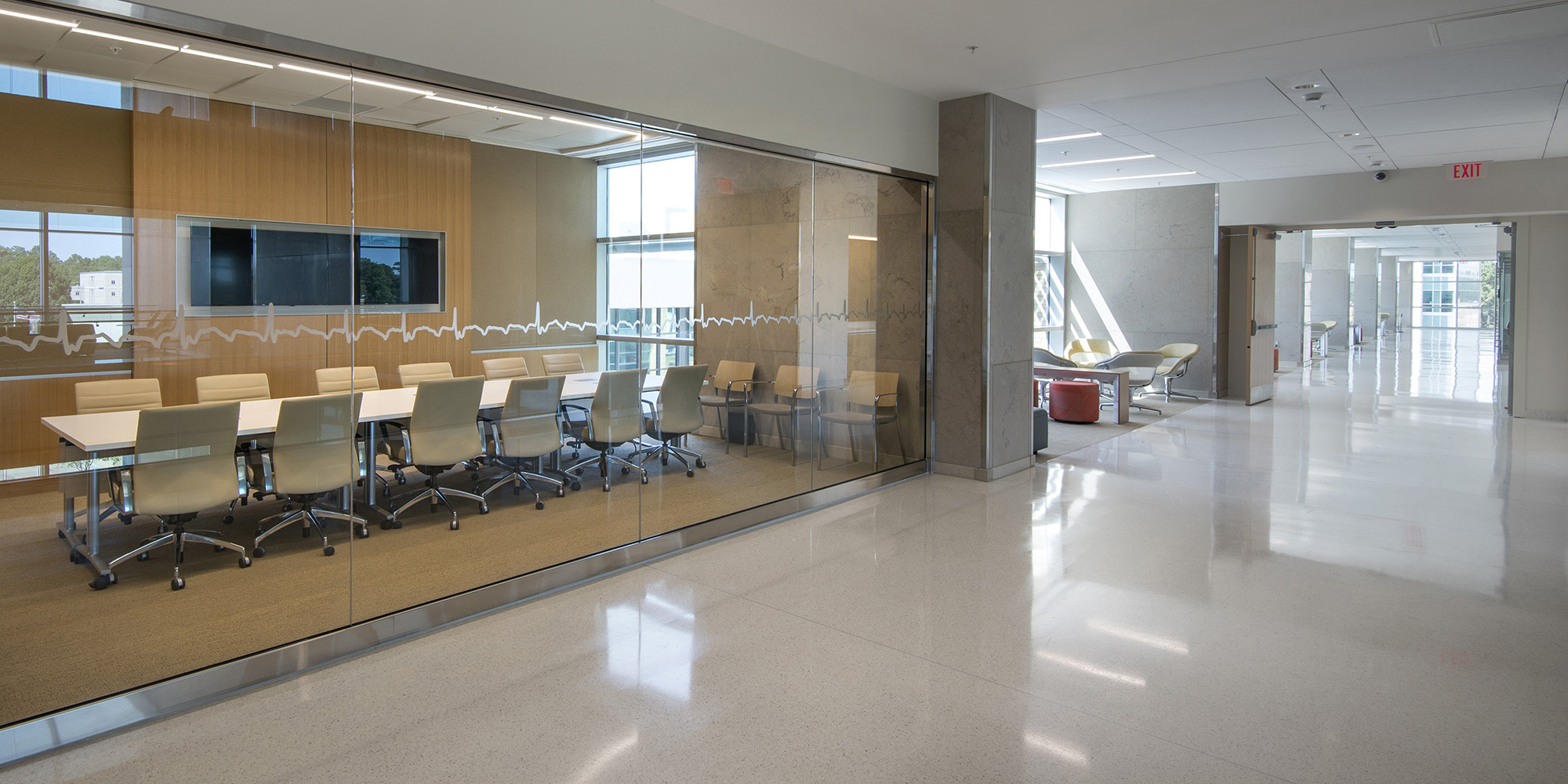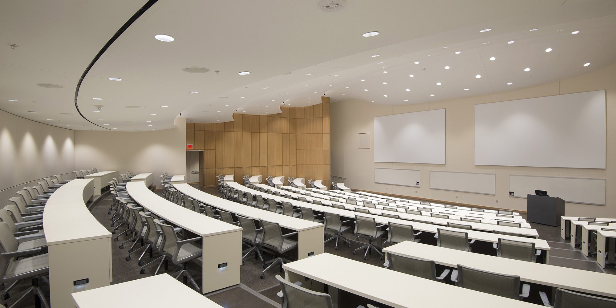 This five-story building is made up of classrooms and laboratories, as well as amphitheaters, small group rooms, study space, administrative offices, student lounges/lockers/mail boxes, simulation suite, ACLS training suite, clinical skills assessment suite, multipurpose labs, and a retail food vendorĀ and connects to the Learning Resource center. The space increased the incoming class sizes from 135 students per year to more than 165.