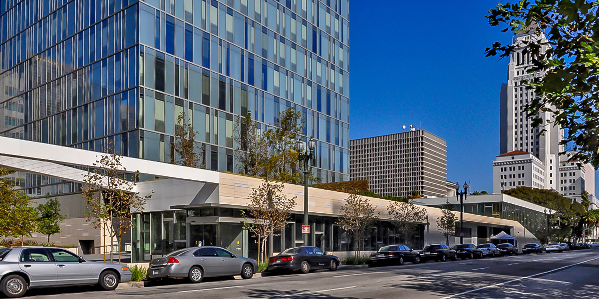 The 500,000-square-foot Police Administration Building is located across the street from City Hall in downtown Los Angeles and includes below-grade parking for 350 cars. This project was one of the largest construction endeavors the City of Los Angeles had undertaken in over a decade. The building has areas dedicated to police administration and investigative operations and features large assembly areas including a Police Commission hearing room, conference center, Compstat Command Center, a 200-seat café, and a 400-seat auditorium located outside the building footprint on Main Street to stimulate the street level and serve building occupants as well as the general public. Integrated into the design are generous public spaces, civic plazas, and lush gardens to promote a sense of openness and community between LAPD and surrounding neighborhoods.