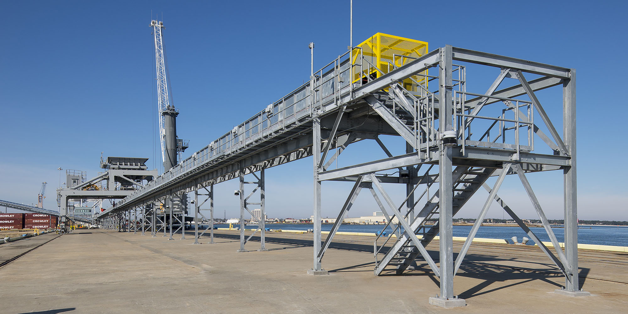 This Construction Management at-Risk contract was for preconstruction and construction services. The facility provides ship to storage receiving conveyor systems, vertical storage capability (12 silos 40 feet wide by 139 feet tall and three silos 65 feet wide by 159 feet tall for a total capacity of 220,000 tons of ilmenite ore and coke) and storage to rail or truck load out conveyor systems. This project included all civil, mechanical, structural and electrical work along with all other work systems to provide a complete, full and operational facility.