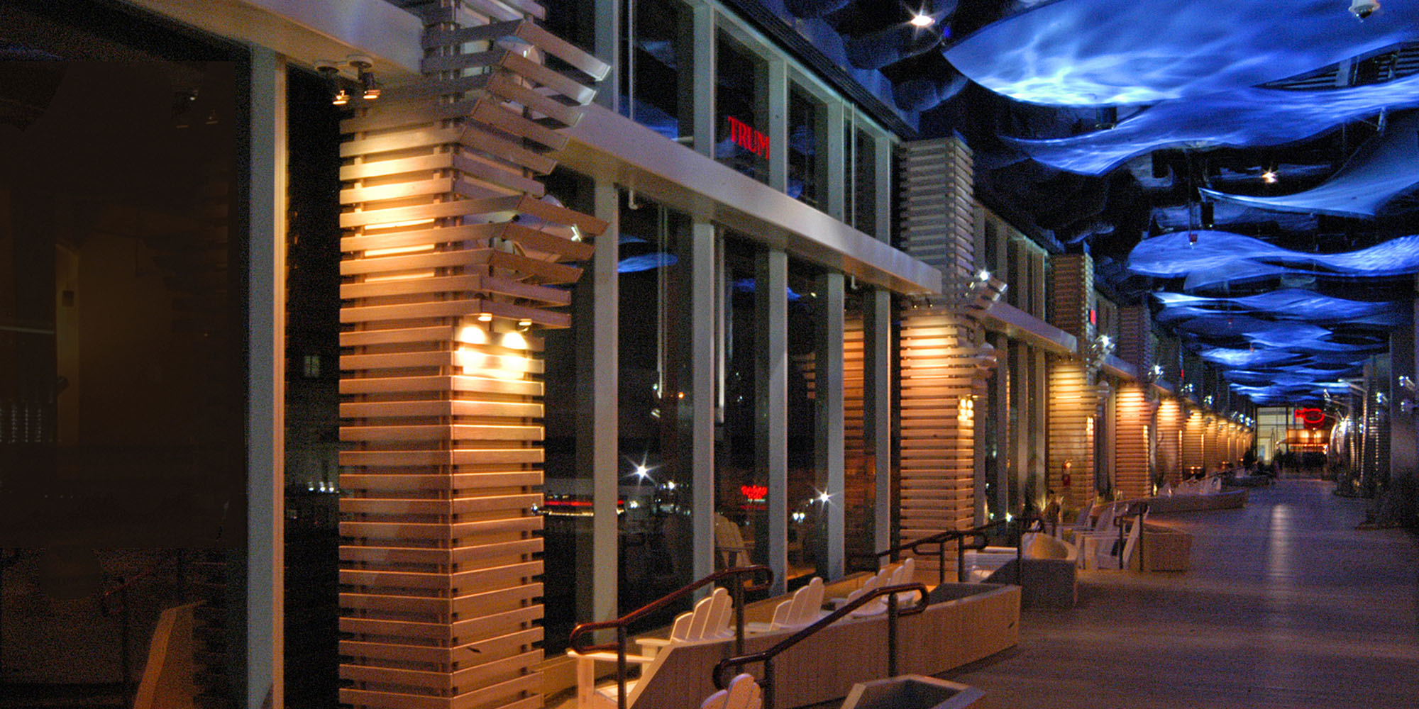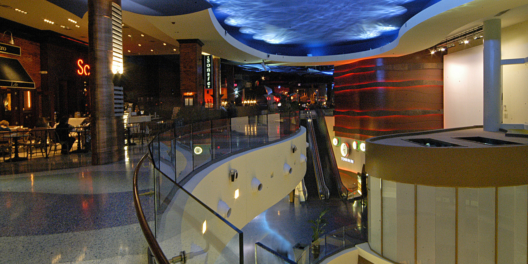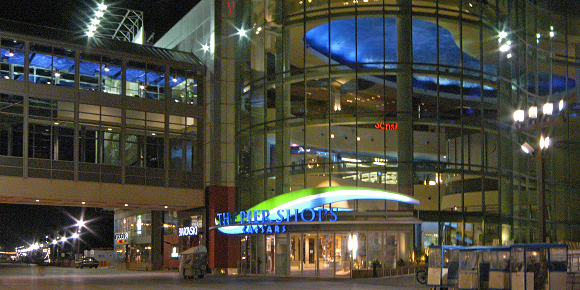 Total redevelopment of one of the most historic piers in Atlantic City. The four-level complex created luxury retail, restaurants and entertainment space that capitalizes on the rich tradition of the city. The design of the "Bridge Level" offers elegant urban boutique-style shopping and is connected directly to Caesars casino by a skybridge. The "Promenade Level" features a raised boardwalk and seven restaurants with panoramic views of the ocean. In the evening, the Pier transforms into a festival of lights with animated billboards applying the latest technology in fiber optics, LED, and video. The Pier at Caesars was built atop a pier that extends 900 feet into the Atlantic Ocean from the historic boardwalk. Every construction operation required equipment to be operated from the sand. A reprocessed concrete pad along both sides of the pier provided the dry land mass to support construction. Additionally, deliveries were planned to avoid interfering with tourist foot traffic along the boardwalk.