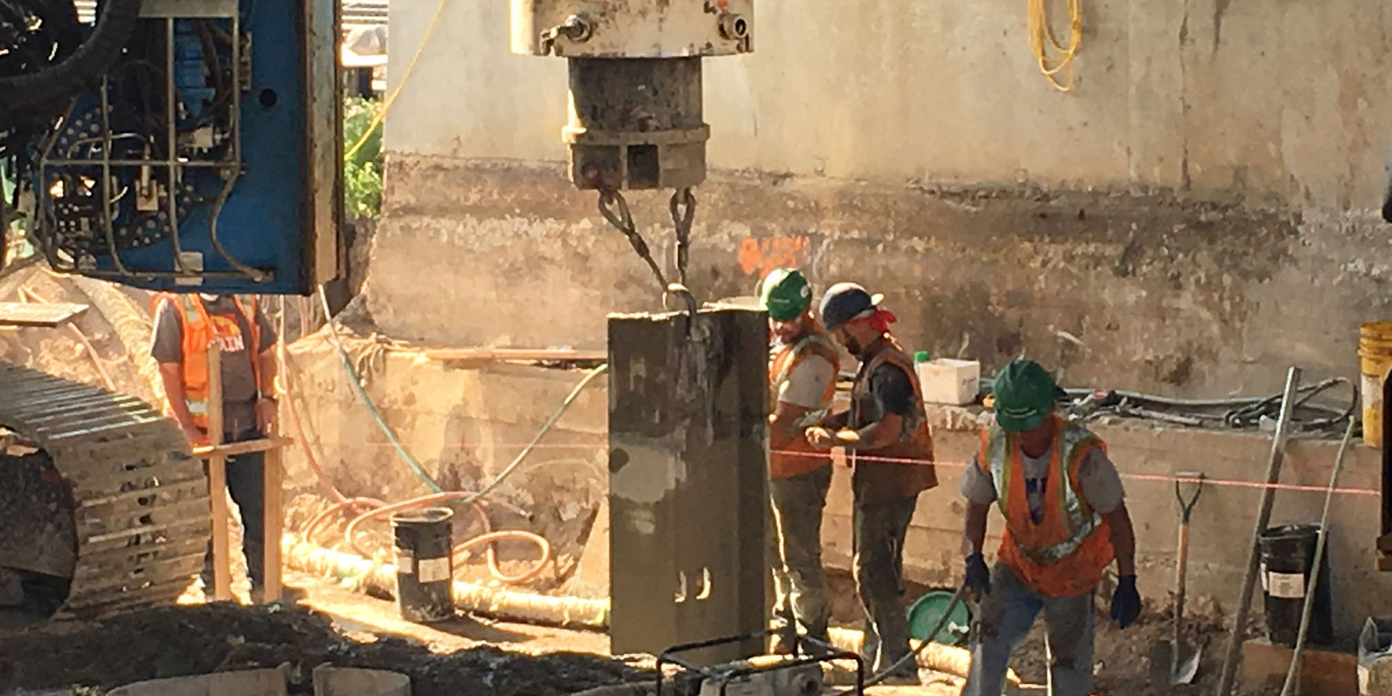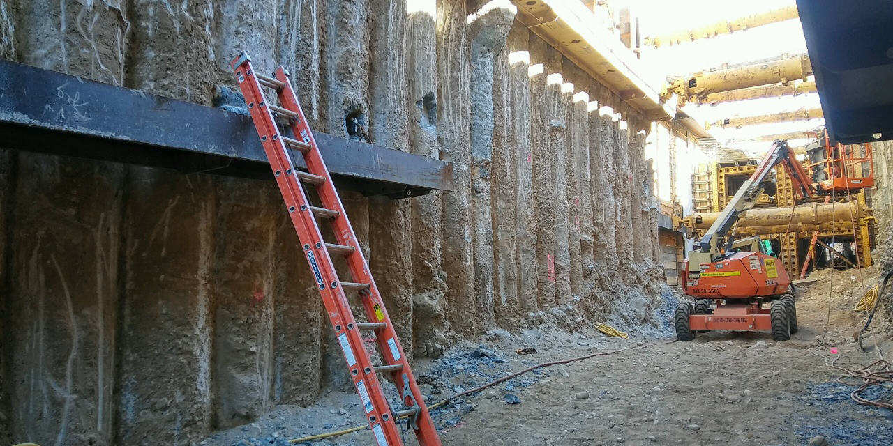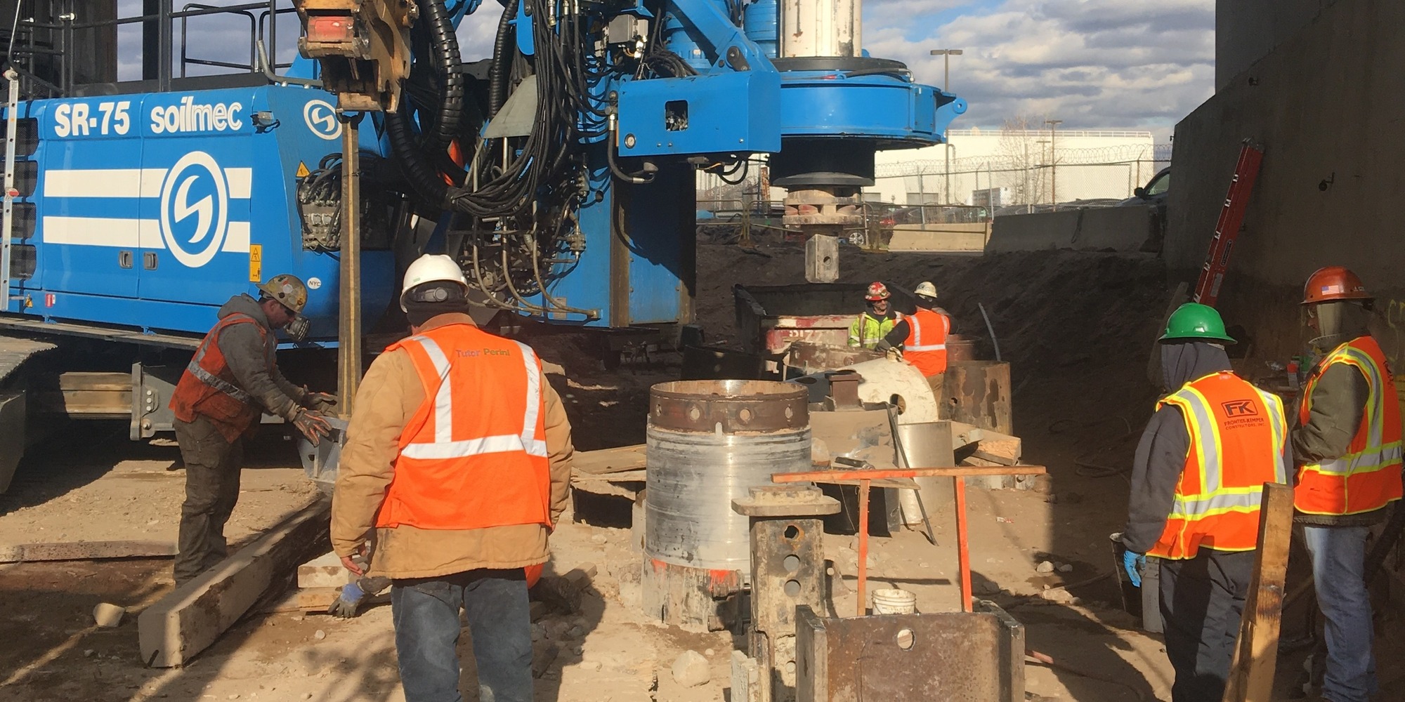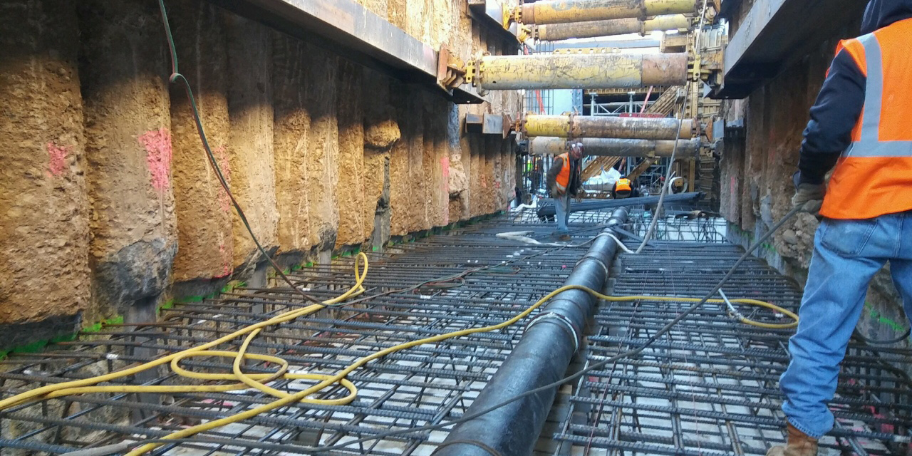 The work included two retaining walls, 740-foot cut and cover tunnel for Track D approach structure, one-half mile of trough installation, demolition and replacement of 48th St Rail Bridge, track and switch installation, and secant piles for support of the below-ground rail lines.
