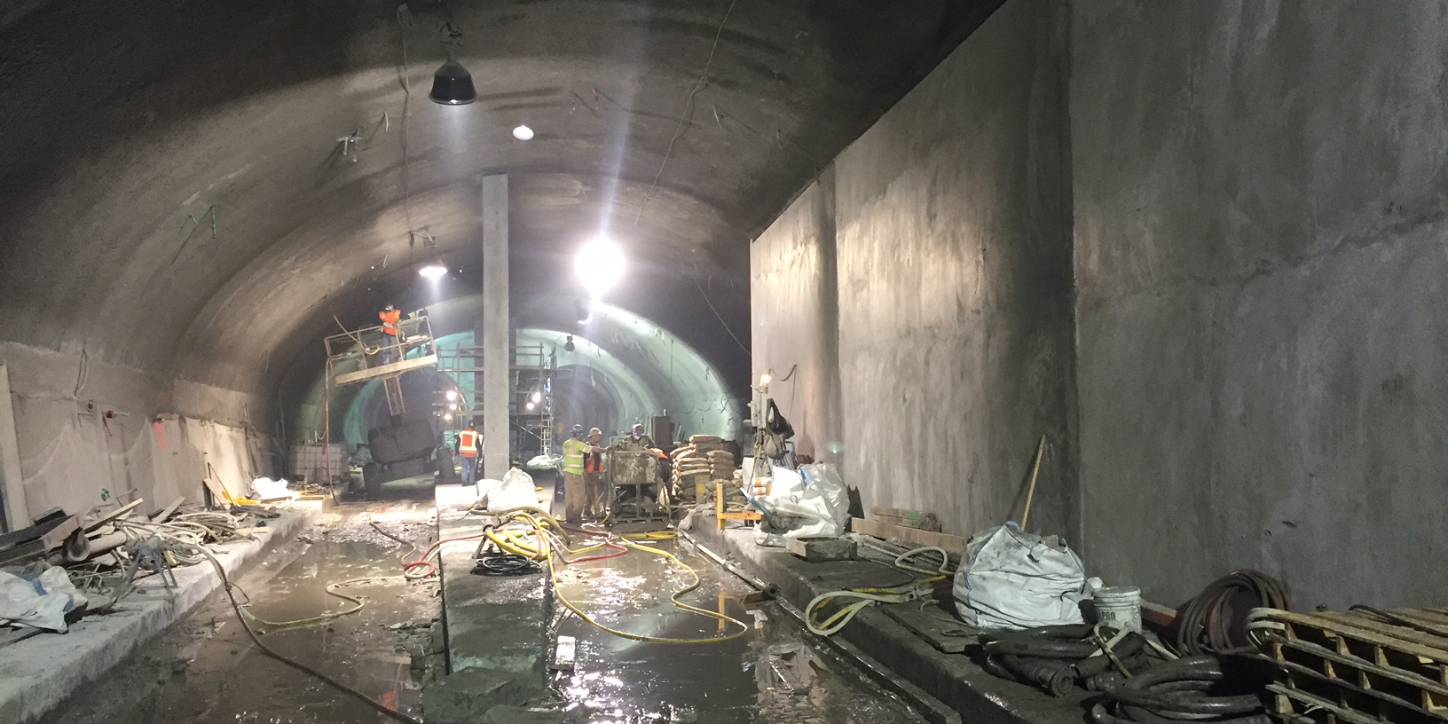 This portion of the East Side Access program involved structural concrete lining of tunnels, escalator pits, access tunnels and arches covering four caverns, one ventilation facility, and eight cross passages. It also included a four-mile tunnel over 100 feet below Madison Avenue where over 50,000 feet of underground raceway, signal and communication trough, and grounding systems for future follow-up contracts were installed.
