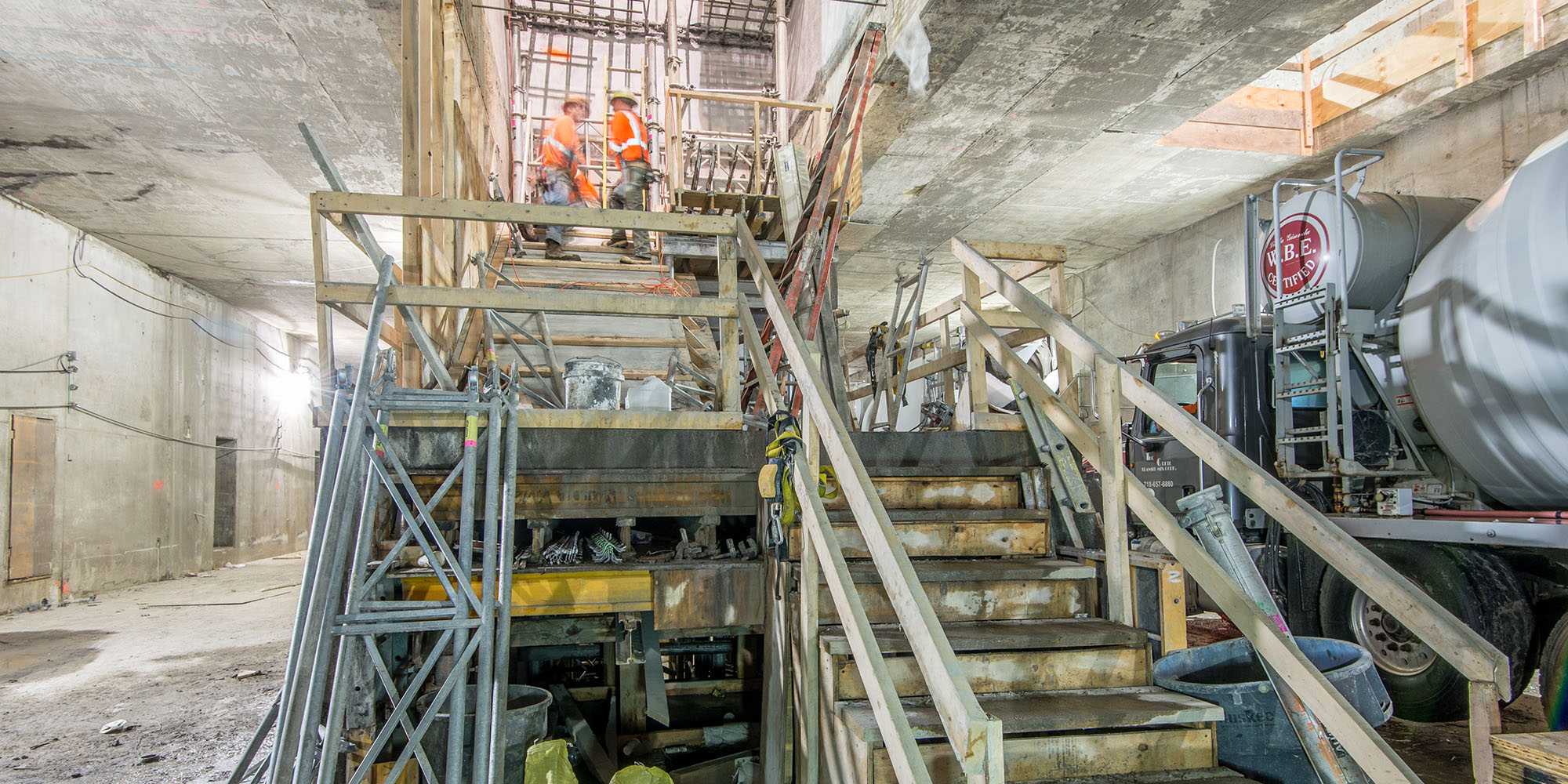 The MTA's East Side Access Project is a multi-billion dollar infrastructure project designed to bring Long Island Railroad to Grand Central Station in New York City. This contract, the Manhattan North Structures Package, involved the installation of permanent structural concrete lining and fit-outs within tunnels, caverns, and interior structures. The existing tunnels run from just north of Grand Central Terminal located in Manhattan to Long Island City, Queens. CM006 also included the rehabilitation of the 63rd Street Tunnel and construction of the 63rd Street Tunnel duct bench.