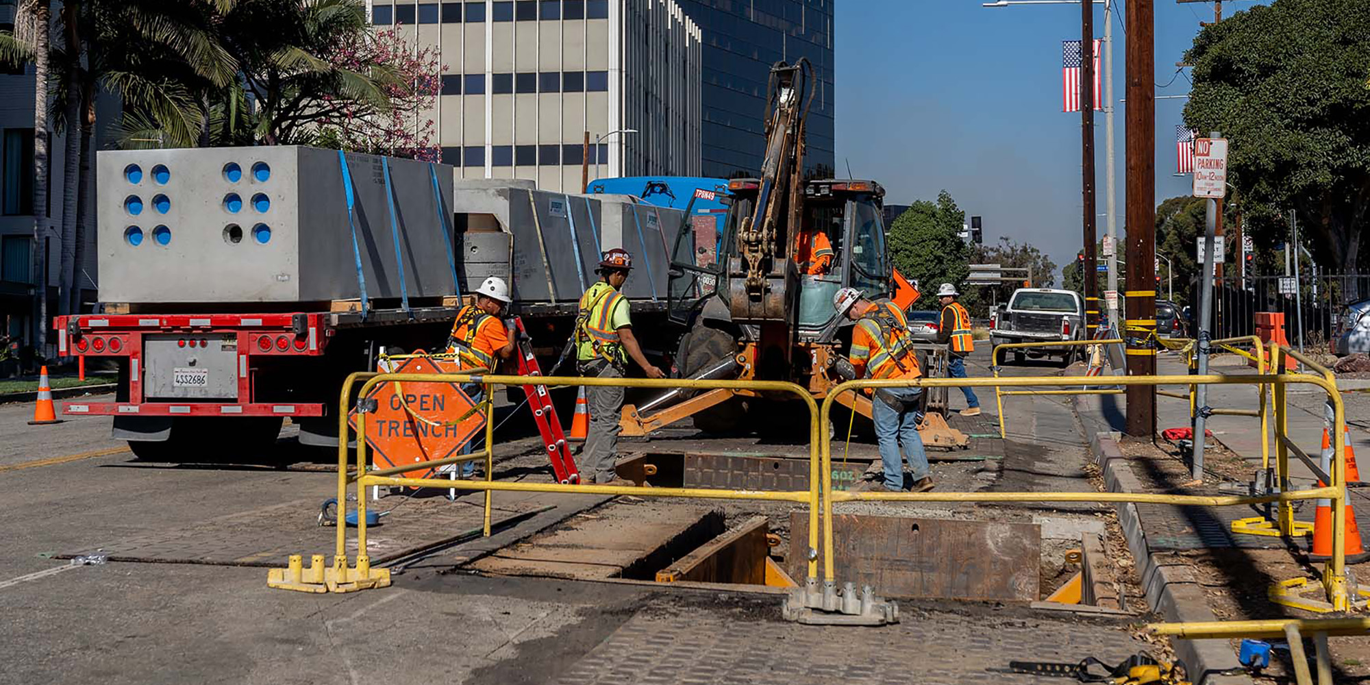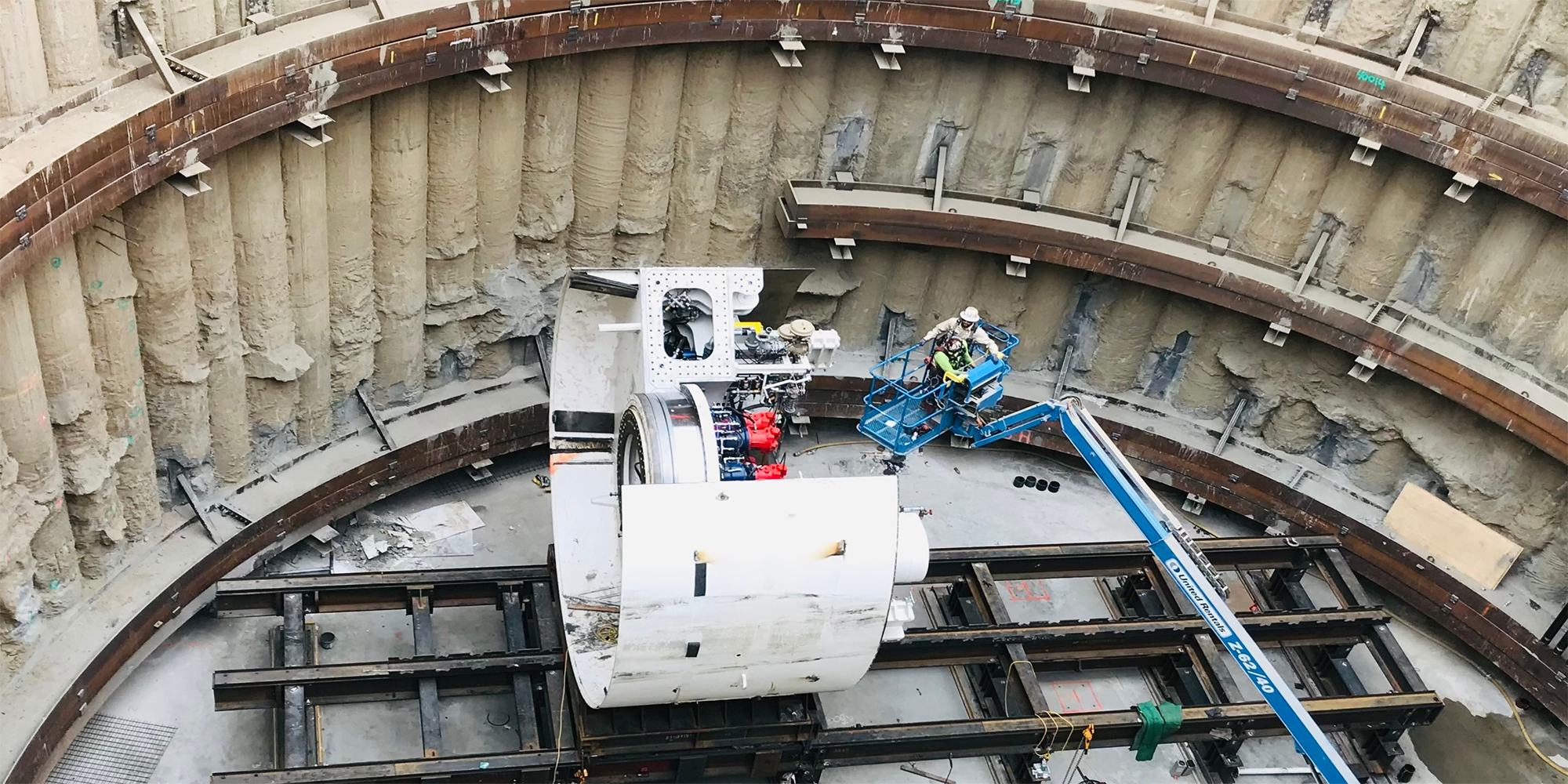 Design-Build project consisting of two 22-foot diameter twin bore subway tunnels. Each tunnel is 13,680 linear feet with 14 cross-passages. The tunnels will be excavated utilizing a Herrenknecht Earth Pressure Balance Tunnel Boring Machine with precast concrete segments as the final lining. Tutor Perini is also the Design-Build contractor for the Purple Line Extension Section 3 Stations project that will add two additional stations at Wilshire/Westwood and on the U.S. Department of Veterans Affairs property.