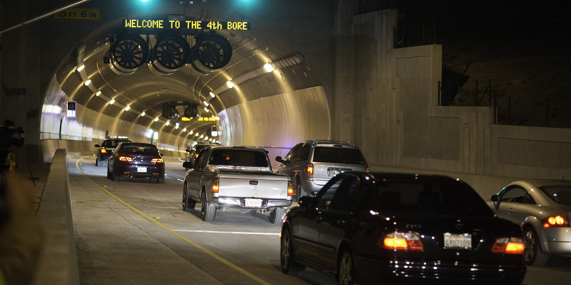 The tunnel has two 12-foot lanes, a 10-foot north shoulder, a two-foot south shoulder, and emergency walkways. The tunnel is approximately 41 feet wide and 3,389 feet in length. Other elements of the tunnel include seven emergency cross passages, a two-story O&M building, retaining walls and a noise barrier, pavement overlay at the SR 24/Caldecott Lane interchange, improvements to eastbound SR 24, and improvements to the Fish Ranch Road on-ramps.
